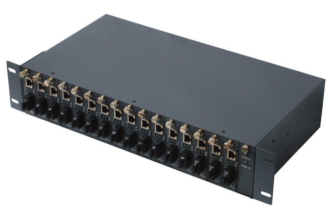 14槽光纤收发器机架系为电信工程配套而设计开发的电信级产品 , 是一个高集成度的标准 19 英寸 2U 高的光纤收发器中心设备。可将最多 14 台 ,10M 、 100M 、 10/100M 、 1000M或10/100/1000M 的多模、单模电源外置式光纤收发器集中装在一个机架中,统一供电。这样不但减少了连线,简化了结构,而且便于管理和维护。